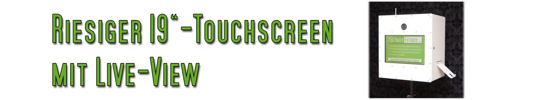 Noch einfacher geht’s nicht: Unsere Fotoboxen bedient Ihr ganz einfach über den sehr einfach aufgebauten Touchscreen. Bevor die Fotos geschossen werden, seht ihr euch per Live-View auf dem Bildschirm. Das bedeutet: Nur 1x Start drücken und der Rest geht automatisch 😉