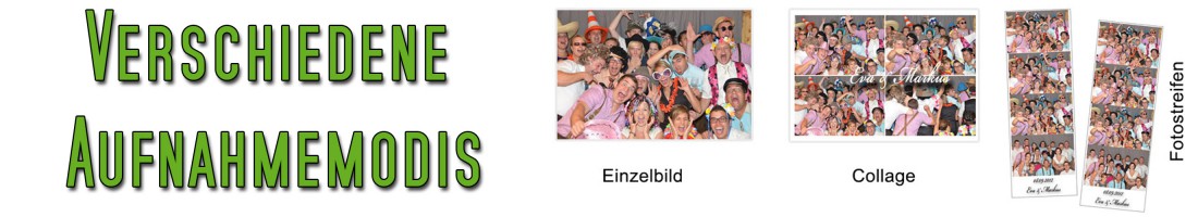 Standardmäßig werden nach dem Starten der Fotosession immer 4 Fotos geschossen. Diese werden dann innerhalb weniger Sekunden nach dem letzten Foto in Form einer Collage auf einem 10 x 15cm Foto ausgedruckt. Solltet ihr eine individuelle Anordnung der Fotos wünschen und/oder euer Logo o.ä. mit aufbringen wollen, so können wir dies gerne an eure Bedürfnisse anpassen. Gerne können wir euch auch per E-Mail ein paar Beispiele zukommen lassen, damit ihr euch inspirieren lassen könnt.